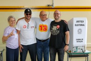 Inês Maria, Pedro, José de Filippi Júnior e Lucas O prefeito Filippi (PT), candidato à reeleição em Diadema, votou ao meio-dia na EE João Ramalho, região...