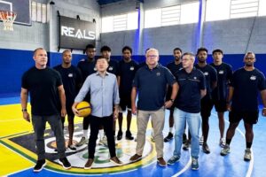Taka Yamauchi, Jefferson Nogoseki e representante da Federação Paulista de Basquete (FPB) e da MCS Marketing Esportivo (Foto: PMD) Diadema, agora, conta com...
