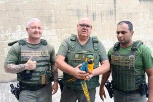 Ave foi examinada por veterinário da Prefeitura e entregue à Delegacia de Meio Ambiente (Foto: PMD) Depois de um chamado da população, equipe da Guarda Civil...