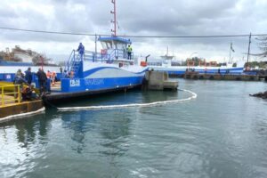 Exercício simulou um vazamento de diesel marítimo durante o abastecimento de um ferryboat atracado no píer do estaleiro(Foto: Governo de SP) A Secretaria de...