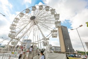 Somente no último final de semana, dias (8 e 9), foram arrecadados 850 kg de alimentos não perecíveis nas duas rodas-gigantes da cidade As duas rodas-gigantes...