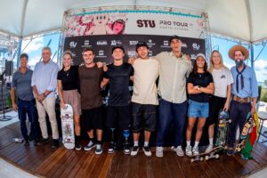 Pedro Barros, Rayssa Leal, Gabi Mazetto, Augusto Akio, o parakatista Vini Sardi, o argentino Matias Dell Olio e a holandesa Keet Oldenbeuving participaram de...