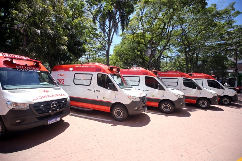 A Prefeitura de Diadema realizou cerimรดnia de entrega de cinco ambulรขncias para o Serviรงo de Atendimento Mรณvel de Urgรชncia (SAMU), sendo duas de Suporte Avanรงado de Vida (SAV) e trรชs de Suporte Bรกsico, uma viatura para a Guarda Civil Metropolitana (GCM) e um caminhรฃo para o Corpo de Bombeiros.