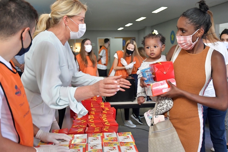 A primeira-dama e presidente do Fundo Social Bia Doria entregou, no sábado (10), 1 mil brinquedos e 7,2 mil chocolates para 1 mil crianças atendidas pela creche do Instituto Anglicano em Paraisópolis.