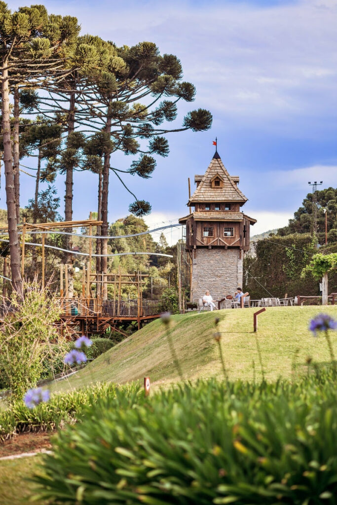 Outra novidade é o Parque da Aventura, espaço ao ar livre que amplia as possibilidades de lazer e convivência. Dele fazem parte circuito de arvorismo, torre medieval temática, redário gigante, tirolesa convencional e diferentes atividades integradas à paisagem, com destaque para a tirolesa russa, inédita na região, que proporciona uma experiência dinâmica e imersiva.