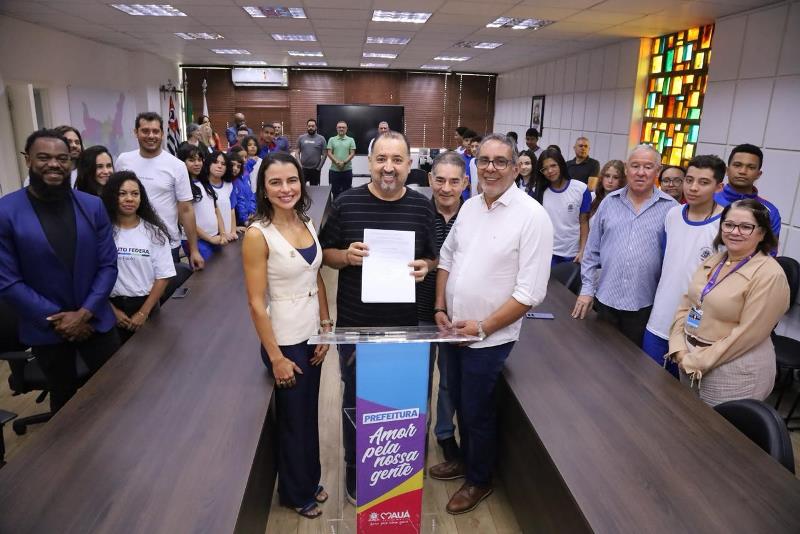 O prefeito de Mauá, Marcelo Oliveira, e a diretora-geral do Instituto Federal de São Paulo (IFSP – campus Mauá), Tamyris Bonilha, assinaram, na segunda (13), termo de parceria para a implantação do projeto “Partiu IFSP”. A iniciativa tem como objetivo preparar estudantes da rede pública de ensino para o Vestibulinho 2027 da instituição.