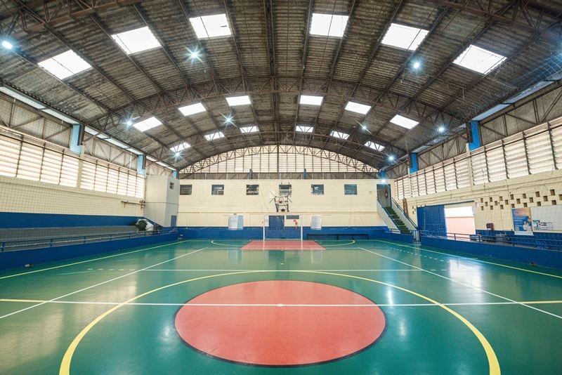 A reestruturação geral do ginásio abrange colocação de nova iluminação de LED na quadra e área externa, instalação de novas redes de proteção, pintura geral interna e externa do espaço, substituição de todo sistema elétrico e hidráulico, além de construção de área coberta para atividades sociais. Iniciadas há 60 dias, as intervenções físicas estão em andamento por parte da equipe própria de manutenção da Prefeitura.